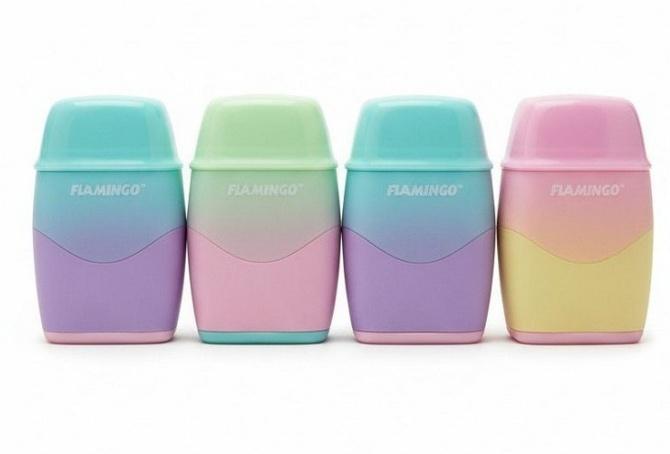 Temperówka plastikowa 2-otworowa (11mm) z gumką do wymazywania 3 pastelowe wesje kolorystyczne