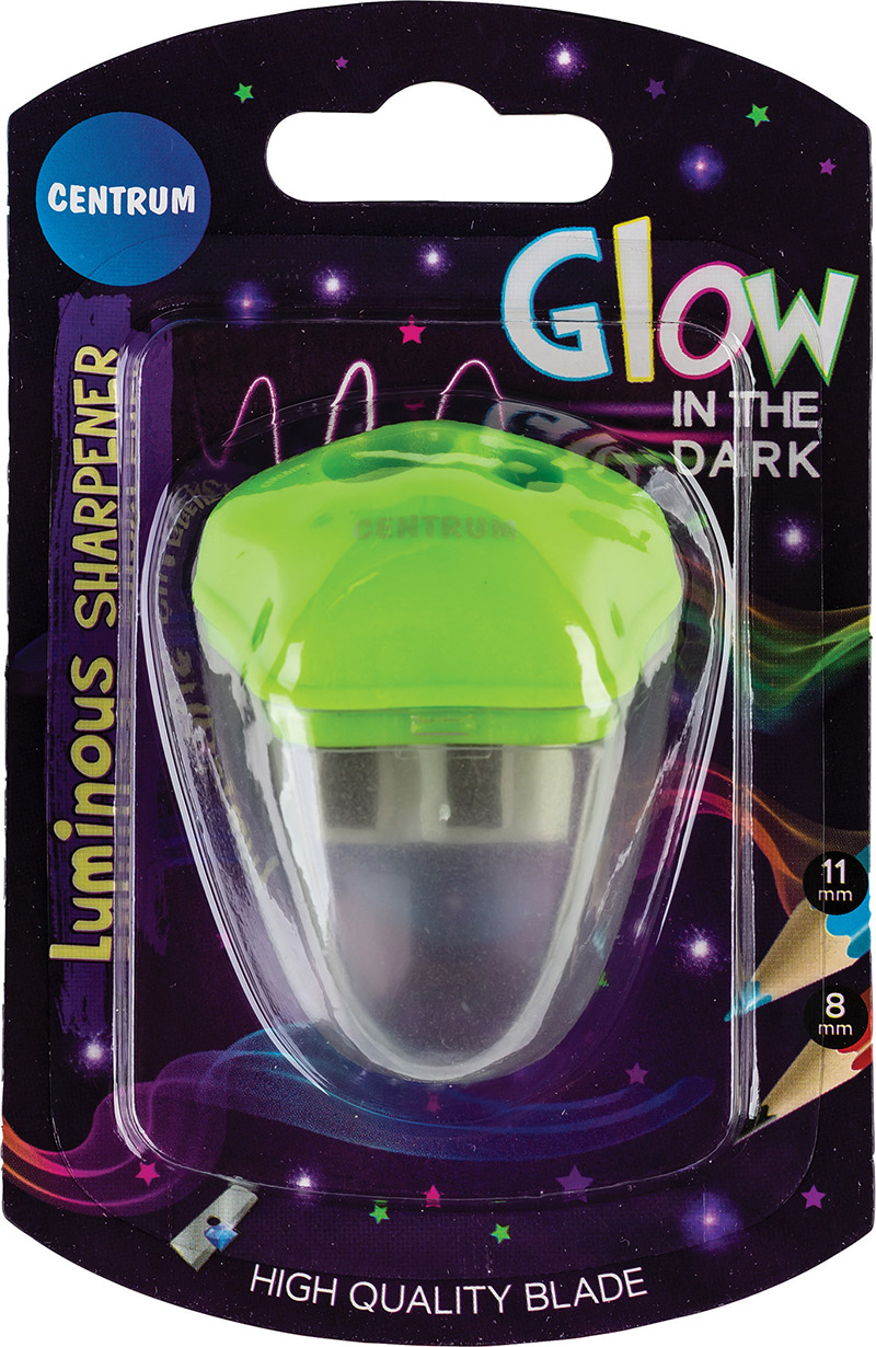 Opakowanie Temperówka plastikowa z dwoma ostrzami i pojemnikiem świecąca w ciemności