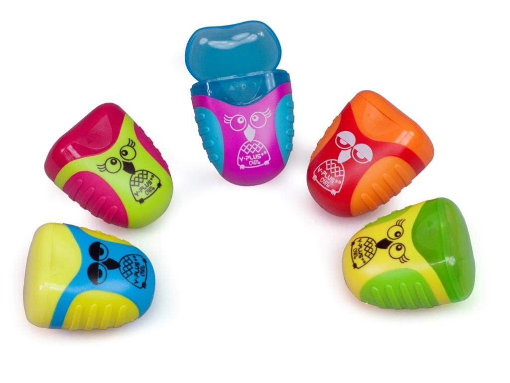 Owl. Podwójna temperówka. Pojemnik na ścinki. Mix kolorów.