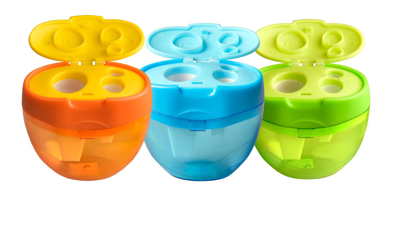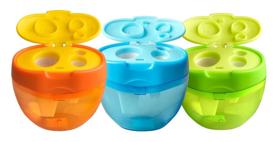 Temperówka potrójna o ergonomicznym kształcie z otworami różnej średnicy (16 mm, 11 mm, 8 mm). Stalowe ostrze gwarantuje długotrwałe użytkowanie. Transparentny zbiornik umożliwia kontrolowanie poziomu zapełnienia.