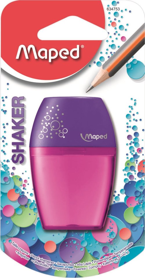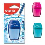 Temperówka z plastikowym pojemnikiem na ścinki i jednym otworem. Blister.
