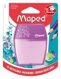 Plastikowa temperówka z dwoma otworami i transparentnym pojemnikiem na ścinki. Dostępne kolory: niebieski, zielony i różowy.