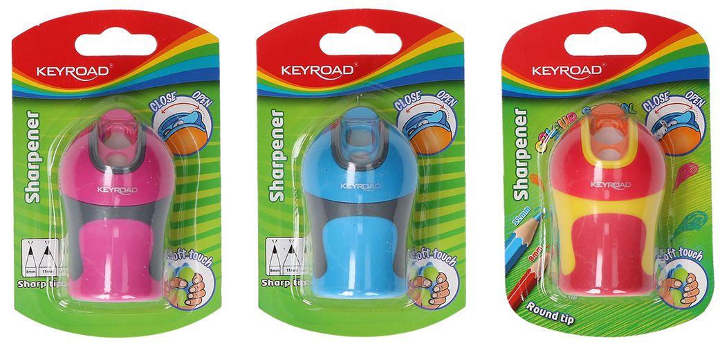 TEMPERÓWKA PODWÓJNA SOFT TOUCH PLASTIKOWA KEYROAD OSTRZENIE W SZPIC BLISTER - MIX KOLORÓW.