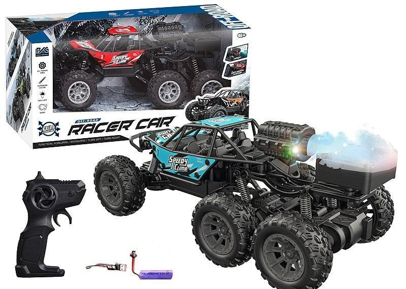 auto na radio, metalowe, 6 kołowe, funkcja pary z wydechu, światła, kabel USB; 26x12x11cm, W/B