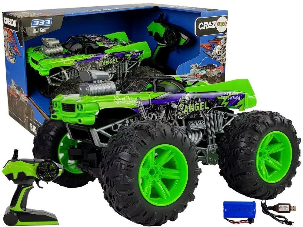 Auto Terenowe Zdalnie Sterowane 1:14 2.4G RC Zielone Duże Koła Terenowe wyprawy i moc adrenaliny oraz niespotykany wygląd to właśnie zainteresuje wszystkich fanów motoryzacji. Tworzenie swoich własnych torów przeszkód, trudnych tras na swoim terenie rozwinie jego wyobraźnie, co pozwoli na tworzenie najróżniejszych scenariuszy. Model działa na częstotliwości 2,4GHz, co oznacza, że jest on znacznie mniej podatny na zakłócenia sygnału niż maszyny pracujące na niższych częstotliwościach. Tak szerokie pasmo pozwala na zabawę kilkoma samochodami w jednym miejscu, bez obaw o utratę kontroli nad nim. Prosta obsługa pilota sprawia, że model doskonale nadaje się dla tych, którzy dopiero zaczynają swoją przygodę z modelami zdalnie starowanymi. Od najmłodszych lat będą rozwijać zdolności manualne, skupienie i poznawać budowę aut. Specyfikacja: - Kolory: zielony - Materiały: metal, elementy elektroniczne, guma, tworzywo sztuczne - Skala: 1:14 - Bateria litowa: 7.4 V 1200 mAh - Częstotliwość: 2.4G - Czas zdalnego sterowania: około 25 minut - Czas ładowania: około 3,5 h - Zasilanie kontrolera do zdalnego sterowania: 2 baterie AA 1.5V (brak w zestawie) - Wiek dziecka: powyżej 3. roku życia - Zasięg zdalnego sterowania: 25 m - Rozstaw kół: 17 cm - Średnica koła: 12 cm -Prędkość: 15 km/h Elementy zestawu: - auto terenowe zdalnie sterowane - pilot do zdalnego sterowania - akumulator 7.4V - ładowarka USB - specyfikacja, instrukcja w języku angielskim Wymiary wybranych elementów zestawu: - auto terenowe zdalnie sterowane: 31 cm x 30 cm x 18 cm - pilot do zdalnego sterowania: 18 cm x 5 cm x 14 cm Wymiary pudełka: 50 cm x 29 cm x 33,5 cm Zabawka przeznaczona jest dla dzieci powyżej 3. roku życia. Zestaw posiada certyfikat CE i jest zgodny z normą EN 71. Zapakowany jest w kartonik z przezroczystą witrynką, dzięki czemu nadaje się idealnie na prezent.