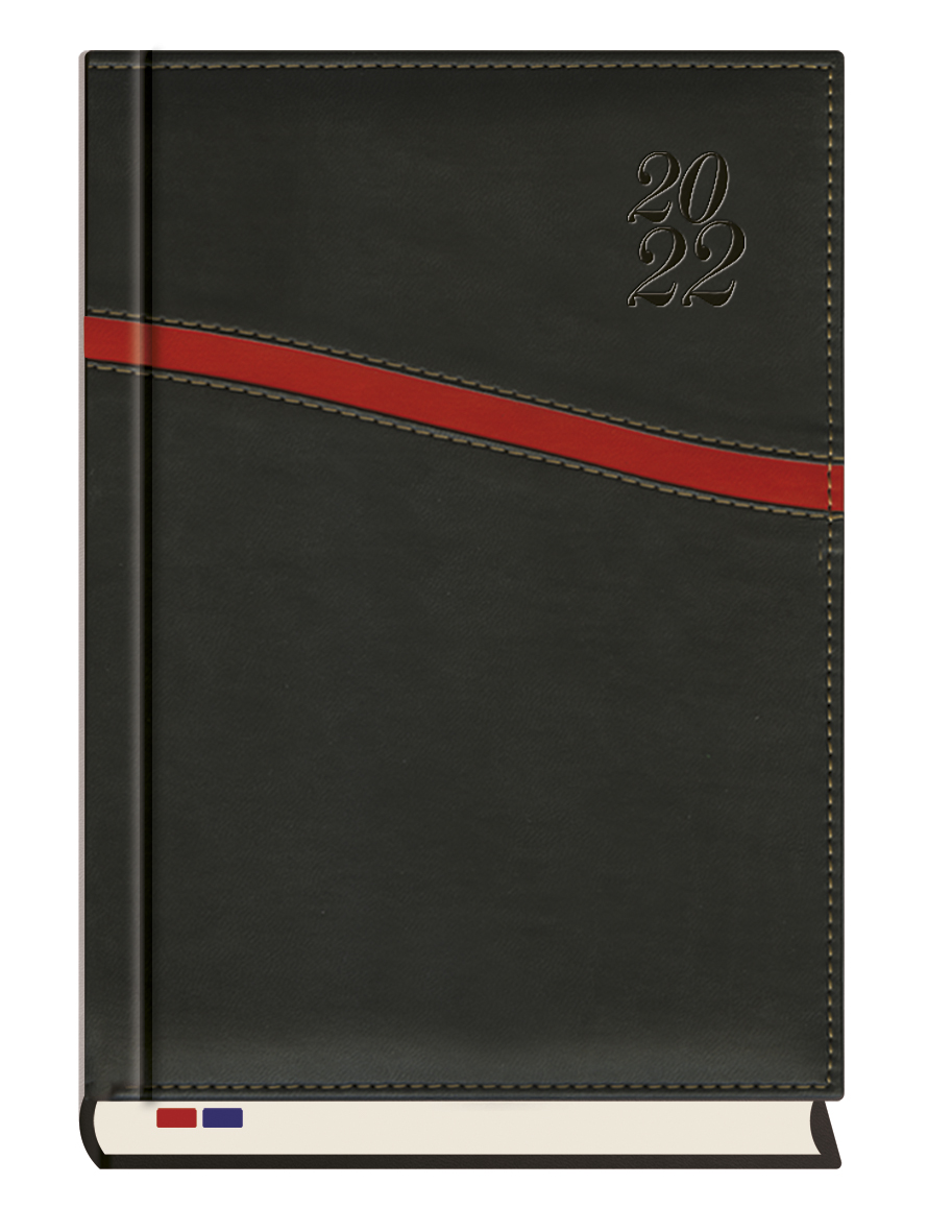 oprawa - skóropodobne kombinowana, wycięty register dwuprzebiegowy, dwie tasiemki, perforowane narożniki.