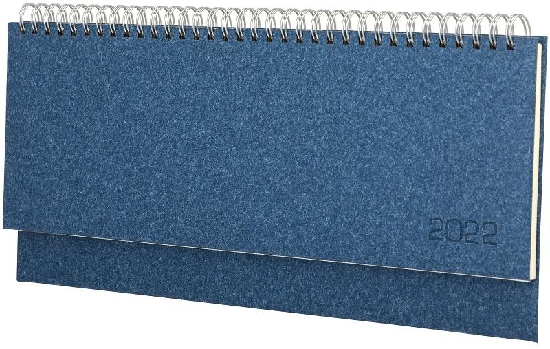Terminarz leżący na biurko z kalendarium w układzie tygodniowym poziomym. Zawiera przejrzyste kalendarium oraz część informacyjną. Grzbiet spiralowany.