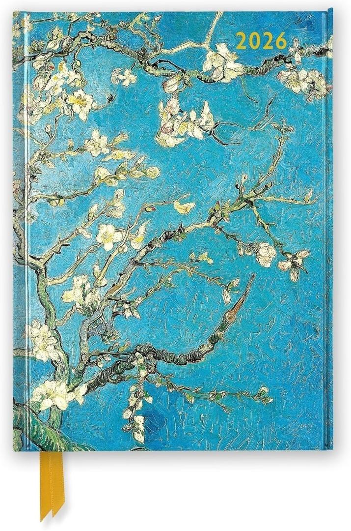 Terminarz tygodniowy na rok2026, zatytułowany VincentvanGogh: Almond Blossom 2026 Luxury Diary Planner, wydany przez wydawnictwoFlame Tree Publishing. Motywem przewodnim są wyjątkowe obrazy Vincenta van Gogha, w szczególności "AlmondBlossom" - delikatna i pełna światła kompozycja, która nadaje terminarzowi artystyczny i elegancki charakter. Każdy tydzień został zaprojektowany w układzie weektoview, czyli jedna strona z kalendarium i przeciwległa strona z liniaturą do notatek, dzięki czemu terminarz łączy funkcję praktycznego planowania z możliwością swobodnych zapisów.