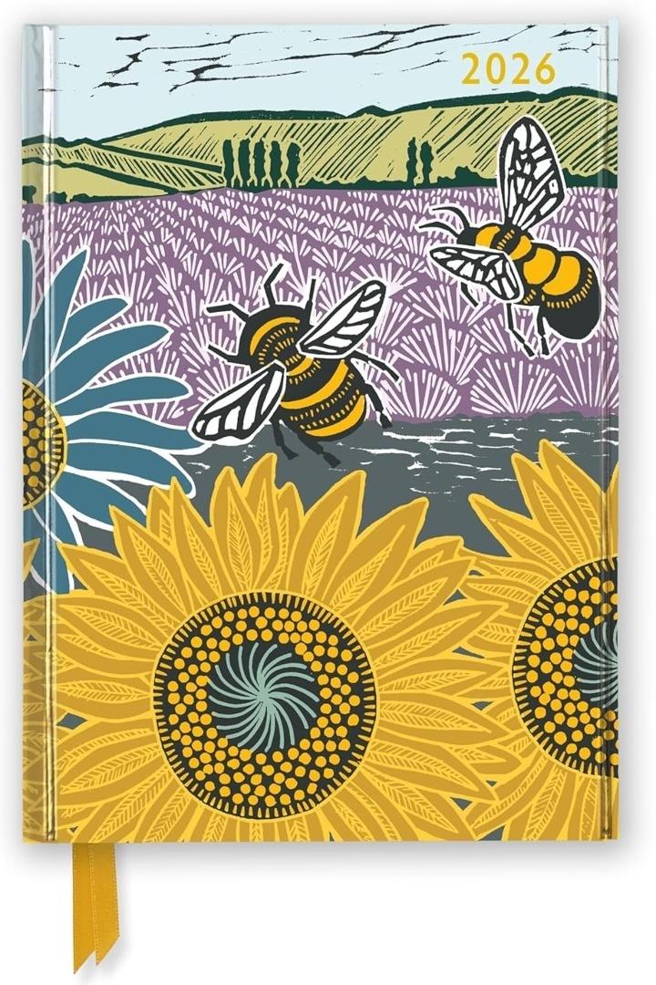 Terminarz tygodniowy na rok 2026, zatytułowany Kate Heiss: Sunflower Fields 2026 Luxury Diary Planner, wydany przez wydawnictwo Flame Tree Publishing. Motywem przewodnim są grafiki linorytowe autorstwa Kate Heiss, przedstawiające pola słoneczników i delikatne formy botaniczne - prace pełne światła, barwy i artystycznej ekspresji. Każdy tydzień został zaprojektowany w układzie weektoview, czyli jedna strona z kalendarium połączona z drugą stroną przeznaczoną na notatki, dzięki czemu terminarz łączy funkcję praktycznego planowania z możliwością swobodnych zapisów.