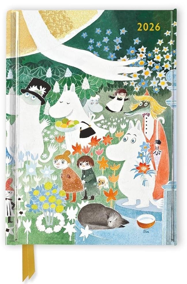 Terminarz tygodniowy na rok2026, zatytułowany Moomin: Dangerous Journey 2026 Luxury Pocket Diary Planner, wydany przez Flame Tree Publishing. Motywem przewodnim są ilustracje z przygód bohaterów z uniwersum Moomintroll ("Muminki"), przedstawione w eleganckiej oprawie w formacie kieszonkowym. Każdy tydzień został zaprojektowany w układzie weektoview - czyli po jednej stronie znajduje się kalendarium, a na przeciwległej stronie miejsce na notatki - co pozwala połączyć funkcję organizacyjną z możliwością swobodnych wpisów.