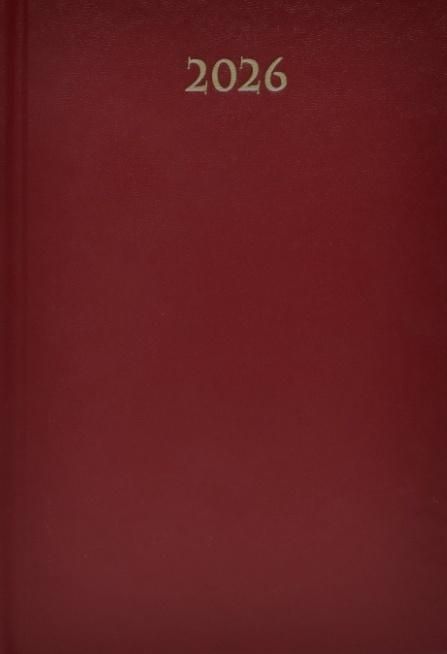 blok: 140x205 mm, 320 stron, papier biały 60g/m2, druk 2 kolory, tasiemka, blok kalendarza szyty nićmi OKŁADKA: skóropodobna, tektura, bez gąbki, ze złoceniem roku