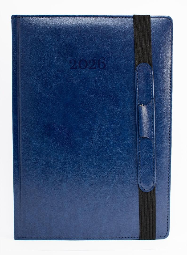 OKŁADKA: skóropodobna Nebraska z obszyciem, z gąbką 3mm, tłoczenie roku, gumka 2cm z uchwytem na długopis