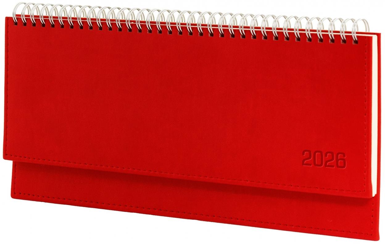 Terminarz biurkowy w eleganckiej oprawie z Vivelli. Okładka obszyta nićmi. Przejrzyste kalendarium w układzie tygodniowym, skrócone kalendarium trzech miesięcy, zaznaczone święta i daty imienin.