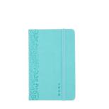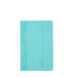 blok: 90x140 mm, 128 stron, papier kremowy 64g/m2, druk 2 kolory, kolorowe brzegi kartek, tasiemka, blok kalendarza szyty nićmi, zaokrąglone rogi