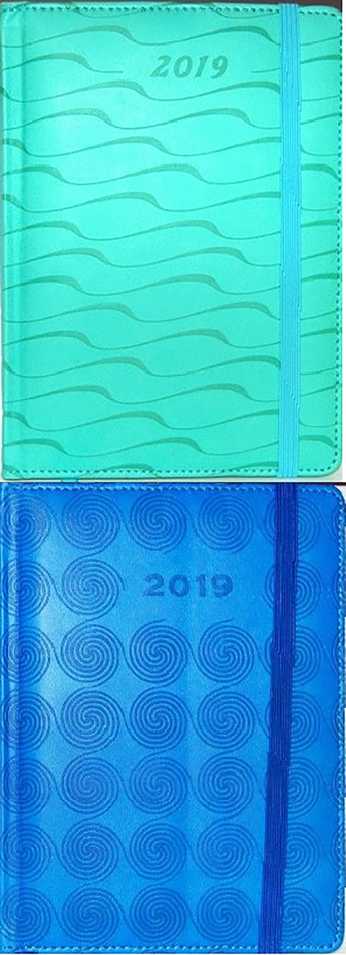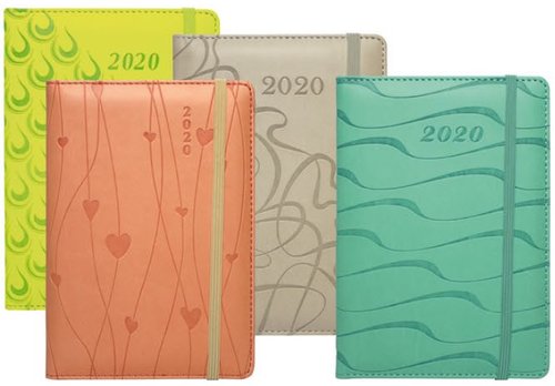 Kalendarium: 3 języczne, uproszczone Układ: tygodniowy, tydzień po lewej stronie, po prawej miejsce na notatki Okładka: twarda VIVELLA Z DELIKATNYM TŁOCZENIEM NA GRZBIECIE, obszyty brzeg gumka 6 mm Na wyklejkach: kolorowe mapy Dodatkowe informacje: notatnik, na początku - planer na cały rok. Mix wzorów, wzór wysyłany losowo.