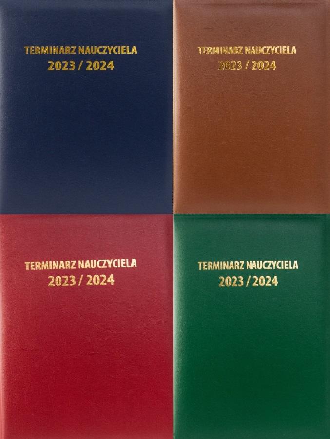 OKŁADKA - miękka, skóropodobna z gąbką 3mm i obszyciem, złocenie "Terminarz Nauczyciela 2023/2024"