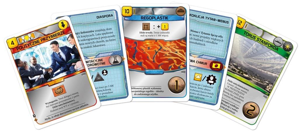 UWAGA! Część kart z tego zestawu służy do rozgrywki z dodatkiem Terraformacja Marsa: Niepokoje (ich treść odnosi się bezpośrednio do elementów z tego dodatku).