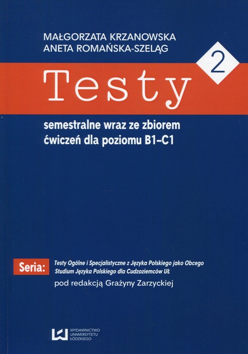 Seria Testy Ogólne i Specjalistyczne z Języka Polskiego jako Obcego Studium Języka Polskiego dla Cudzoziemców Uniwersytetu Łódzkiego jest pracą zbiorową doświadczonych wykładowców, zatrudnionych w ośrodku akademickim, który nieprzerwanie od 1952 roku kształci cudzoziemców z całego świata. Niektórzy z nich uczą się w Łodzi języka polskiego ogólnego, inni przez rok przygotowują się językowo do podjęcia studiów wyższych. Ci drudzy - m.in. kandydaci na studia humanistyczne, prawnicze, ekonomiczne, medyczne, techniczne poznają, obok odmiany standardowej, także specjalistyczną odmianę polszczyzny, zgodną z wybranym kierunkiem studiów. Teksty i testy zgromadzone w poszczególnych zeszytach serii pomogą uczącym się języka polskiego w różnych jego odmianach rozwinąć kompetencję leksykalną oraz sprawdzić kompetencje w zakresie rozumienia ze słuchu, pisania, czytania, poprawności gramatycznej, komunikacji językowej (od poziomu A1 do poziomu C2). Każdy zeszyt testów może służyć do pracy w klasie z pomocą nauczyciela, jak też do pracy samodzielnej w domu. Można też przypuszczać, że niektóre z zeszytów będą wykorzystywane jako podręczniki, szczególnie na kursach językowych dla studentów zagranicznych wybierających się na studia w polskich uczelniach lub pragnących podjąć pracę w Polsce. Autorzy starali się. by teksty i zadania testujące sprawności językowe i kompetencję gramatyczno-leksykalną były ciekawe, a praca z nimi zachęcała do dyskusji i refleksji językowej. A także by dawała przyjemność. prof. UŁ dr hab. Grażyna Zarzycka (redaktor serii)