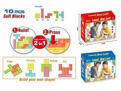Tetris, silikonowe klocki pop i rozmiar opak; 23x7,6x23 cm 2 w 1, Wspaniała sensoryczna, odprężająca gra, jest to jednocześnie zabawka antystresowa oraz klocki geometryczne, które wykonane są z wysokiej jakości silikonu, dzięki czemu klocki są nietoksyczne, trwałe i można je myć. Zestaw zawiera 10 silikonowych klocków Tetris