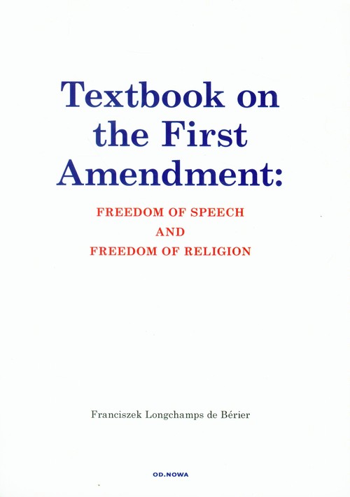 This textbook is the result of the ten years’ experience of teaching about the First Amendment to the United States Constitution. The textbook provides materials for discussion and consists only of selected opinions of American courts which have been abridged to enucleate the main problem and not burden the reader with all the details, and also to avoid discussing legal issues that are not directly related to the present subject matter. The “Textbook on the First Amendment” is about respect for and appreciation of the freedom of speech and freedom of religion. The United States Supreme Court is the ultimate defender of liberty and the pre-eminent guardian of the two freedoms, which is why the overwhelming majority of cited sentences are from that Court. ? Franciszek Longchamps de Bérier is a law professor at the Jagiellonian University in Kraków; he graduated from the University of Warsaw’s Faculty of Law and Administration and has an LL.M. awarded by Georgetown University Law Center; he is a Catholic priest and is an expert on bioethics for the Polish Episcopal Conference as well as a member of the Scientific Committee on Ancient Culture and of the Committee of Legal Sciences of the Polish Academy of Sciences. ?