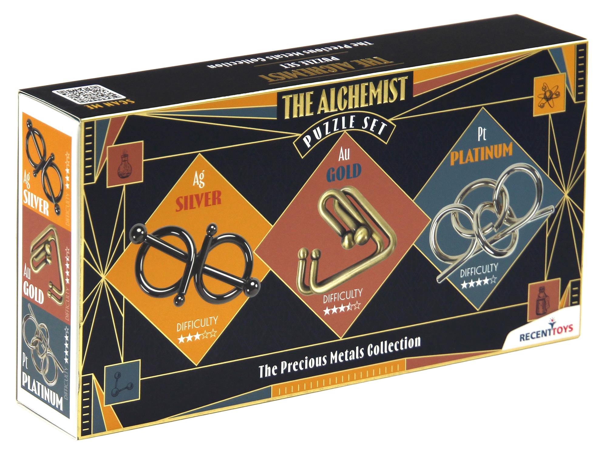 Metale szlachetne takie jak: złoto, srebro i platyna, słyną z wysokiej jakości, czystości i wartości. Zainspirowana alchemią - starożytną praktyką transformacji - seria The Alchemist Puzzles oddaje to magiczne dążenie do perfekcji. Prezentowany zestaw trzech łamigłówek ujawnia piękno, urok i elegancję wybranych metali, zapewniając angażujące i wyrafinowane wyzwanie. Odkryj blask złota, urok srebra i elegancję platyny w serii, która honoruje ich ponadczasowe dziedzictwo! Recent Toys to producent łamigłówek z Holandii. Jak sami o sobie mówią: "Tworzą zagadki dla wszystkich." Jeżeli lubisz matematykę, logikę, układanie wzorów lub po prostu jesteś cierpliwy i wytrwały, to na pewno znajdziesz coś dla siebie! Choć wszystkie łamigłówki są unikatowe to mają one następujące cechy wspólne: 1. Prostota - zagadki są łatwe do wytłumaczenia. Nasz umysł ma się skupić na rozwiązaniu łamigłówki, a nie na zrozumieniu zasad. 2. Mądrość - łamigłówki są zaprojektowane tak, aby zmusić nasz umysł do poszerzenia horyzontów i otwarcia na nowe pomysły. 3. Wytrzymałość - łamigłówki zbudowane są z odpowiednich materiałów. Elementy można przesuwać z wyjątkową łatwością. Chodzą płynnie, szybko i się nie zacinają. ZAWARTOŚĆ: łamigłówka Silver (Srebro) - poziom 3/5 łamigłówka Gold (Złoto) - poziom 3,5/5 łamigłówka Platinum (Platyna) - poziom 4/5