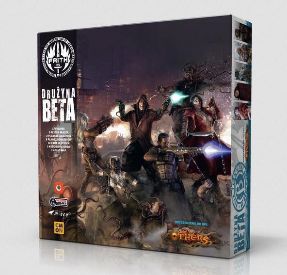 Drużyna Beta słynie z błyskawicznej reakcji oraz godnej uwagi wytrwałości w trudnym położeniu. Co prawda głośno bywało o konfliktach wewnątrz drużyny, jednak ich dowódca, Scott Freder już nie raz pokazał, że potrafi wydobyć co najlepsze ze swych podwładnych łagodząc jednocześnie ewentualne spory. Rozszerzenie Drużyna Beta przynosi jakże potrzebne wsparcie do FAITH, w postaci 5 nowych Bohaterów – każdy z unikatowymi zdolnościami – oraz 6 nowych rodzajów Ulepszeń. Siły Grzechu także otrzymują nowych wyznawców w postaci Spaczonych Policjantów – którzy nie zawahają się otworzyć ogień do samotnych Bohaterów – oraz Spaczonych Strażaków – podpalających kolejne dzielnice Haven. W pudełku znajdziecie również 5 płytek Starego Miasta z nowym układem żetonów, a także alternatywny układ płytek Miasta dla wszystkich 7 Przygód z gry podstawowej.