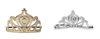 Tiara wykonana z błyszczącego materiału mocowana na gumce. Kolor: srebrny lub złoty