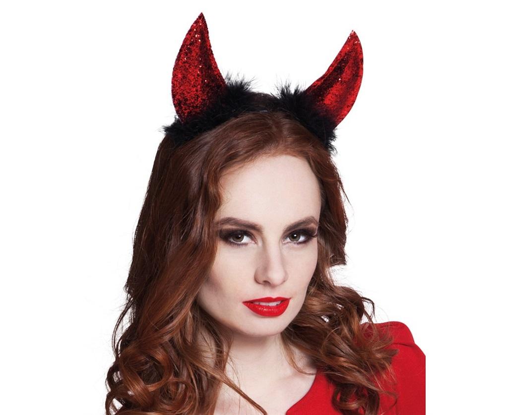 TIARA DIABLICA, BROKATOWA, CZERWONA