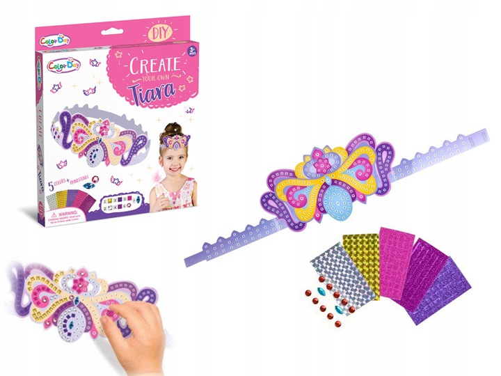 Zestaw zawiera tekturowa tiara, 5 blistrów z ozdobami. Tiara obwód 56 cm (regulacja 4 cm) Wiek: 3+ Wymiary opakowania: 27x3x22.5 cm