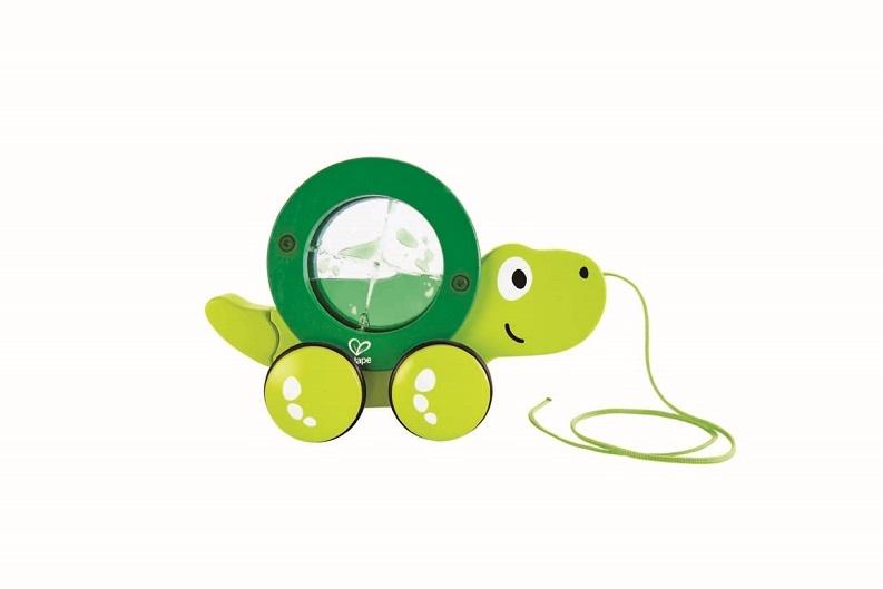 Zupełnie nowa zabawka do ciągnięcia - żółwik Tito! Mały zielony żółwik ma na grzbiecie okrągły pojemniczek który wiruje gdy zabawka jest ciągnięcia przez dziecko. W środku przelewa się intrygująco zielony płyn. Pojemniczek można zdjąć z grzbietu żółwika i wykorzystać jako osobną zabawkę. Wiek: +12 miesięcy Ilość elementów: 2 Elementy drewniane i z tworzywa sztucznego. Opakowanie: 26 x 12 x 18 cm Produkt: 19 x 8 x 14.3 cm