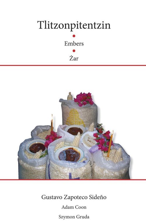 Tom wierszy wybitnego współczesnego poety nahua Gustava Zapoteca Sidena wraz z przekładem literackim w językach angielskim i polskim Adama Coona i Szymona Grudy. Każdy z wierszy jest „żarem czasu”, nośnikiem pradawnych słów, które nie całkiem jeszcze zamilkły, mającym moc ożywiania przeszłości i czynienia jej częścią teraźniejszości. ****** Inin xochicuicaamoxtli tlen quiihcuiloh huei xochicuicatlahcuilohquetl Gustavo Zapoteco Sideno no quitlahtolcuepqueh ica ingleztlahtolli huan polacohtlahtolli Adam Coon huan Szymon Gruda. Cehce xochicuicatl ce “tlitzontlitzin itech cahuitl” tlen quimama huahcapatlahtolli tlen nocca caquizti, tlen quichamanaltia huan quiyancuilia tococolhuan huan tocicihhuan ininnemiliz. ****** This book of poems by the distinguished contemporary Nahua author Gustavo Zapoteco Sideno includes literary translations in English and Polish by Adam Coon and Szymon Gruda. Each of the poems is “an ember of time,” a carrier of ancient words that have not been silenced, having the power to revive the past and make it part of the present.