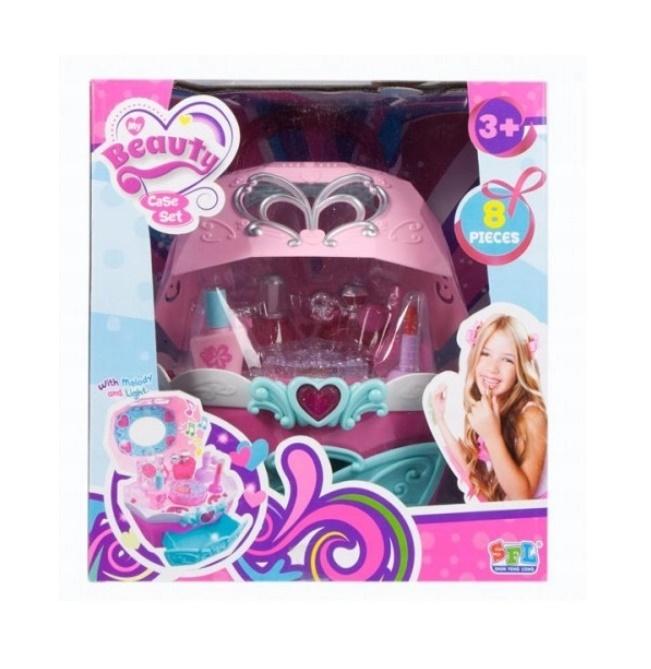 Piękna toaletka MEGA CREATIVE w dziecięcym wydaniu, zawiera mnóstwo dodatków, które z pewnością ucieszą każdą młodą damę. Każda księżniczka marzy, by być piękną już od samego rana! Toaletka posiada efekty świetlne oraz dźwiękowe. Szuflada przy toaletce jest wysuwana więc można w niej schować cenne drobiazgi. Zestaw zawiera: toaletkę, flakoniki z perfumami, szminkę, lakier do paznokci, zegarek oraz zestaw do makijażu. Całość wykonana jest z plastiku. Zestaw przeznaczony dla dzieci w wieku: 3+. Wymaga zasilania 2 bateriami AA - nie załączonoymi do zestawu. Wymiary opakowania(dł.x wys.x gł.) [cm]: 27x29x17.