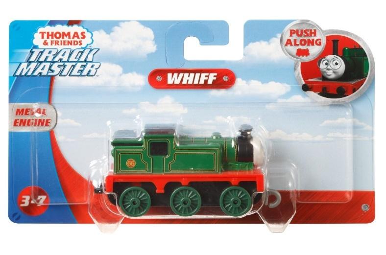 Kolejka z serii Trackmaster świetnie odwzorowuje bajkowego bohatera. Nie posiada napędu porusza się wyłącznie popychana rączką dziecka. Z przodu i z tyłu lokomotywy znajdują się plastikowe haczyki, dzięki którym połączymy ją z wagonikami lub innymi pojazdami z linii.