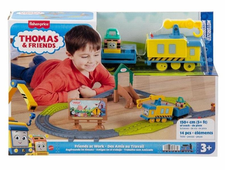Z tymi zestawami z lokomotywą z napędem od Fisher-Price(R) przedszkolaki mogą bawić się w ładowanie i rozładowywanie towarów ze swoimi ulubionymi postaciami z bajki Tomek i Przyjaciele. Mali konduktorzy mogą zebrać takich bohaterów jak Tomek, Piotruś i Nia oraz połączyć zestawy, aby wymyślać jeszcze większe kolejowe przygody w stylu Tomka i Przyjaciół. Zestawy są kompatybilne ze wszystkimi torami Tomek i Przyjaciele, poza linią drewnianą. Każdy zestaw jest sprzedawany oddzielnie. Lokomotywa wymaga 2 baterii typu AAA.