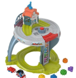 Dzieci kierują kolejową zabawą w zestawie Tomek i Przyjaciele My First Mój pierwszy kolejowy stolik do zabawy od Fisher-Price(R). Ten kolejowy stolik mierzący ok. 60 cm wysokości jest doskonały dla maluchów: ma 2 poziomy okrągłego toru, bujający się mostek, windę i 5 elementów ładunkowych do zabawy w układanie, ładowanie i rozładowywanie. Dzieci będą zachwycone, posyłając lokomotywę Tomka do popychania w podróż po torze, od Domkowa przez cały Sodor, aby mógł dostarczyć towary zupełnie jak w bajce.
