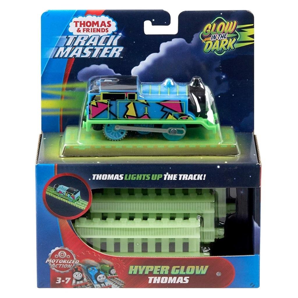 Zabawkowe lokomotywy TrackMaster Hyper Glow z napędem mają światełko, które podświetla dołączony do zestawu świecący w ciemności tor TrackMaster. Gdy te wyjątkowe pociągi przejeżdżają po specjalnych torach, zostawiają za sobą świetlny ślad! A do tego wzory umieszczone na kolorowych lokomotywkach też świecą w ciemnościach, aby zabawa była jeszcze bardziej ekscytująca. Lokomotywki Hyper Glow zostawiają za sobą rozświetlony tor, pobudzając wyobraźnię i ciekawość najmłodszych. W każdym zestawie znajduje się jedna lokomotywka Hyper Glow oraz 3 elementy toru świecącego w ciemnościach.