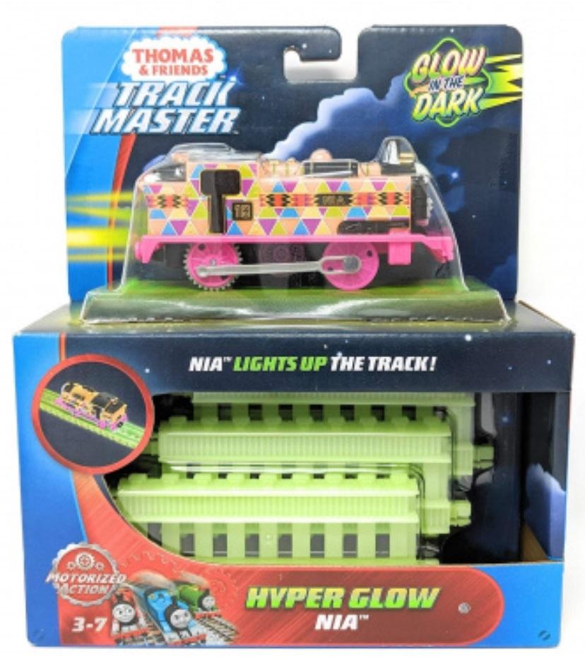 Zabawkowe lokomotywy TrackMaster Hyper Glow z napędem mają światełko, które podświetla dołączony do zestawu świecący w ciemności tor TrackMaster. Gdy te wyjątkowe pociągi przejeżdżają po specjalnych torach, zostawiają za sobą świetlny ślad! A do tego wzory umieszczone na kolorowych lokomotywkach też świecą w ciemnościach, aby zabawa była jeszcze bardziej ekscytująca. Lokomotywki Hyper Glow zostawiają za sobą rozświetlony tor, pobudzając wyobraźnię i ciekawość najmłodszych. W każdym zestawie znajduje się jedna lokomotywka Hyper Glow oraz 3 elementy toru świecącego w ciemnościach.