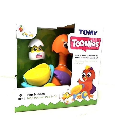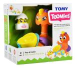 Kura z jajkiem w wózeczku. Wystarczy nacisnąć na głowę kury, a wprawisz ją w ruch. Jajko może wypaść, pęknie skorupka i dziecko zobaczy kurczaczka. Wiek: 9m+