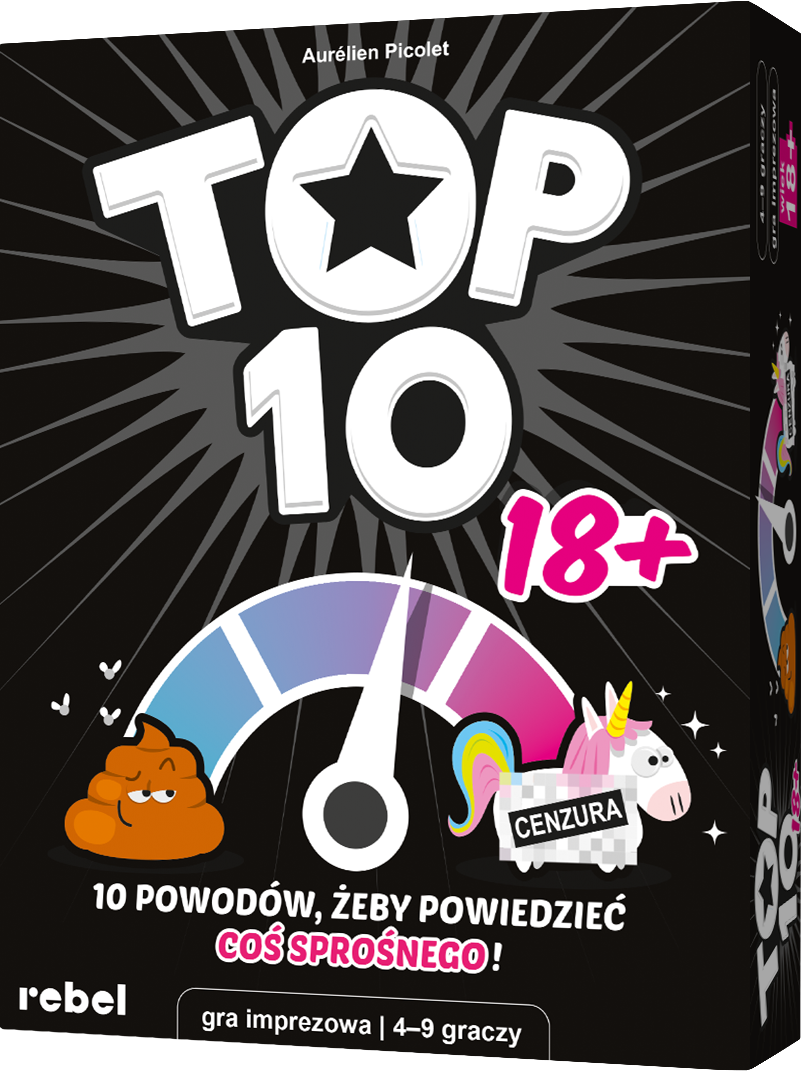 Współpraca, kreatywność i dobra zabawa to Twoje ulubione elementy, a do tego uwielbiasz czarny humor i nieprzyzwoite żarty? Zbierz znajomych i spróbujcie swoich sił w nowej wersji Top 10, przeznaczonej dla dorosłych! To niebanalna gra skojarzeń, w której będziecie mogli puścić wodze fantazji (i inne hamulce), dążąc do wspólnej wygranej.