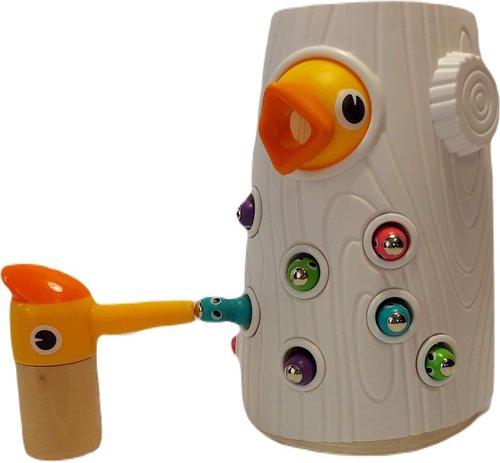 LICENCJA: Top Bright WYMIARY PRODUKTU: 19 x 11 x 8,5 cm WYMIARY OPAKOWANIA: 24,5 x 11,5 x 19 cm FUNKCJE: gra zręcznoścciowa nakarm ptaszka; w zestawie: podstawka - kłoda z Ptasią Mamą, robaczki z magnetycznym noskiem, głodny ptaszek z magnetycznym noskiem; rozwija koordynację wzrokowo - ruchową, łatwe do przechowywania