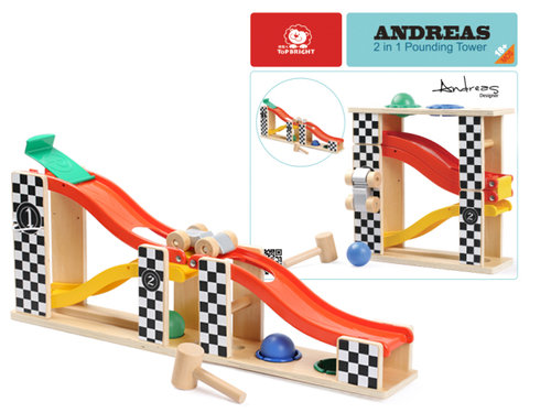 Tor wyścigowy 2w1 W zestawie: młotek, 2 piłeczki, samochód. Zabawka drewniana Trening rączki Trening oka Wspólna zabawa Wiek 18m+