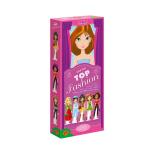 Seria Top Fashion - stwórz niepowtarzalne kreacje dla swojej modelki komponując stroje z 90 elementów do wyboru! Zbierz kolekcję wszystkich pięciu modelek! Zawartość pudełka: plansze do wycinania - 10szt, plansze elementów samoprzylepnych - 2szt, postać modelki z tektury, taśma przylepna, elementy stojaka - 2szt, patyczek, instrukcja.