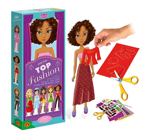 Seria Top Fashion - stwórz niepowtarzalne kreacje dla swojej modelki komponując stroje z 87 elementów do wyboru! Zbierz kolekcję wszystkich pięciu modelek! Zawartość pudełka: plansze do wycinania - 10szt, plansze elementów samoprzylepnych - 2szt, postać modelki z tektury, taśma przylepna, elementy stojaka - 2szt, patyczek, instrukcja.