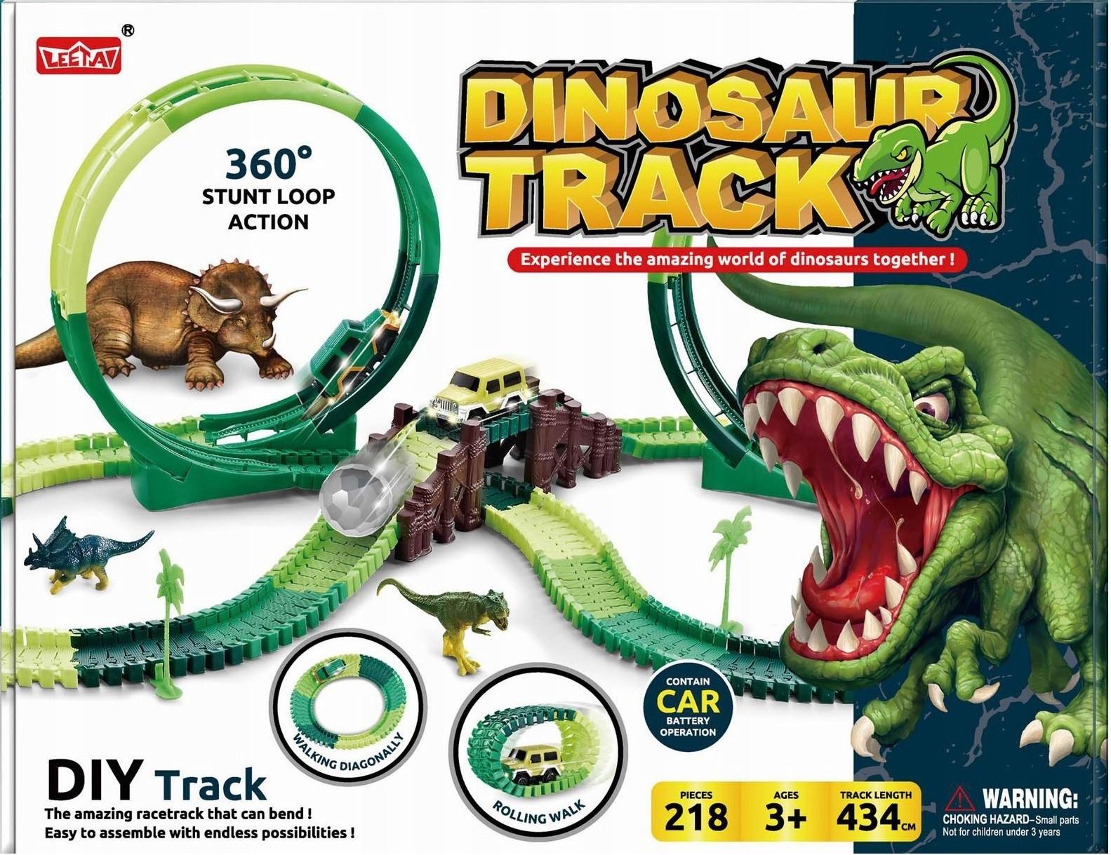 Dinosaur Track rozbudowany tor z dinozaurami i mostem (218 elementów) to pełna akcji przygoda w prehistorycznym świecie!