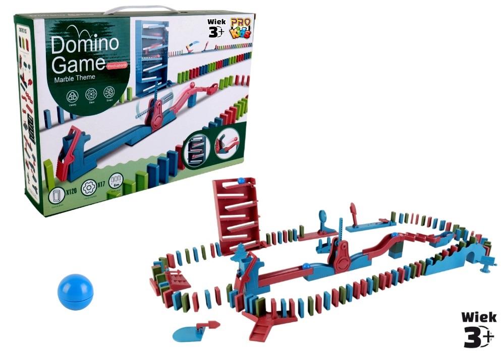 Klocki domino z torem kulkowym to kreatywny zestaw do układania toru przeszkód. W zestawie jest aż 120 plastikowych klocków domino, co pozwala zbudować aż 6 - metrowy tor.