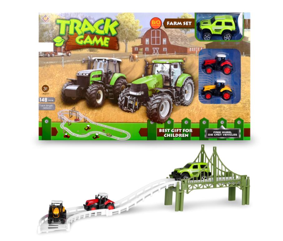Tor farma - 148 elementów, długośćtoru 565 centymetrów. W zestawie 3 pojazdy.