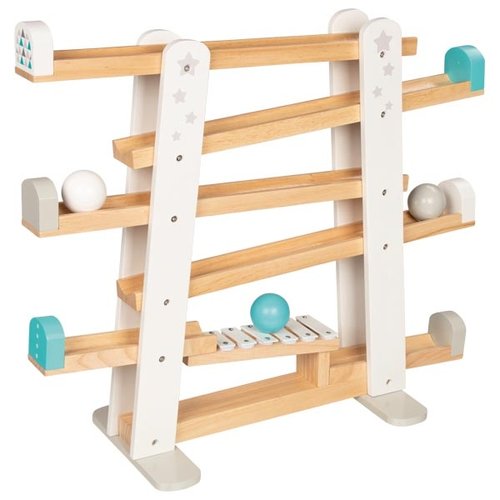 Fascynacja biegiem piłki nigdy nie przestaje zaskakiwać. Dzieci uwielbiają ten rodzaj zabawy! Wspaniały drewniany kulodrom zakończony ksylofonem z sześcioma dźwiękami sprawia, że ta solidnie wykonana zabawka z litego drewna - tor kulkowy jeszcze bardziej zachęca do zabawy.