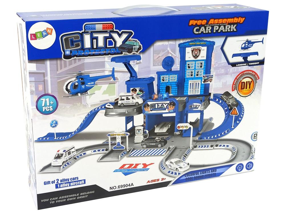 Tor Miasteczko Policja Autka 71 Elementów Dźwięk Światła Duży zestaw składający się z 71 elementów, dzięki któremu możesz stworzyć własny miasteczko policyjne i cieszyć się zabawą. Maluchy uwielbiają zabawki wielofunkcyjne i dodatkowo wcielanie się w rolę, które pozwolą dać upust ich wyobraźni i dają wiele możliwości. Wykonany z najwyższej jakości materiałów produkt zagwarantuje bezpieczeństwo i komfort Twój maluch poczuje się jak prawdziwy policjant, będzie mógł przygotowywać się we własnej bazie na akcje policyjne. Idealna zabawka dla pozytywnego rozwoju Twojego dziecka ! Miasteczko policyjne składa się z 2 poziomów. Na samym dole znajdują się własny garaż i stacja paliw. Drugi poziom połączony jest zjazdami oraz windą na którym znajdują się parkingi dla autek. Na szczycie budynku mamy także lądowisko dla helikopterów. Na środku znajdują się megafony wydające dźwięki oraz światła. Elementy zestawu: - elementy do złożenia - 4 autka policyjne -instrukcja montażu - zestaw naklejek Wymiary opakowania: 43 cm x 21 cm x 10 cm Zabawka przeznaczona dla dzieci powyżej 3 roku życia. Wykonana z bezpiecznego materiału. Parking zasilany jest trzema bateriami AG13 , brak w zestawie.
