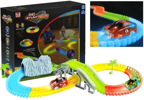 Magiczny kolorowy Tor Samochodowy, który można konfigurować w dowolny sposób. Zestaw Składa się z: -160 elementów toru, -2 auta sportowe LED -2 drzewa -Tunel -Most Tory, dzięki swojej dużej elastyczności można przekładać, obracać, podnosić, zmieniać kierunek jazdy i układać dowolne kombinacje nawet w trakcie przejazdu samochodu. Stworzenie toru to tylko kwestia wyobraźni Twojego dziecka Możesz połączyć jeden długi tor, lub złożyć kilka małych każdy poszczególny element toru jest wypinany. W zestawie znajdują się auta LED zasilane bateriami - 2xAA - brak w zestawie, dzięki temu w nocy oświetla tor tworząc niesamowity efekt. Zestaw mozna bardzo łatwo zdemontować. Wymiary opakowania: 30cm x 25cm x 9cm Tor przeznaczony dla dzieci powyżej 3 roku życia.