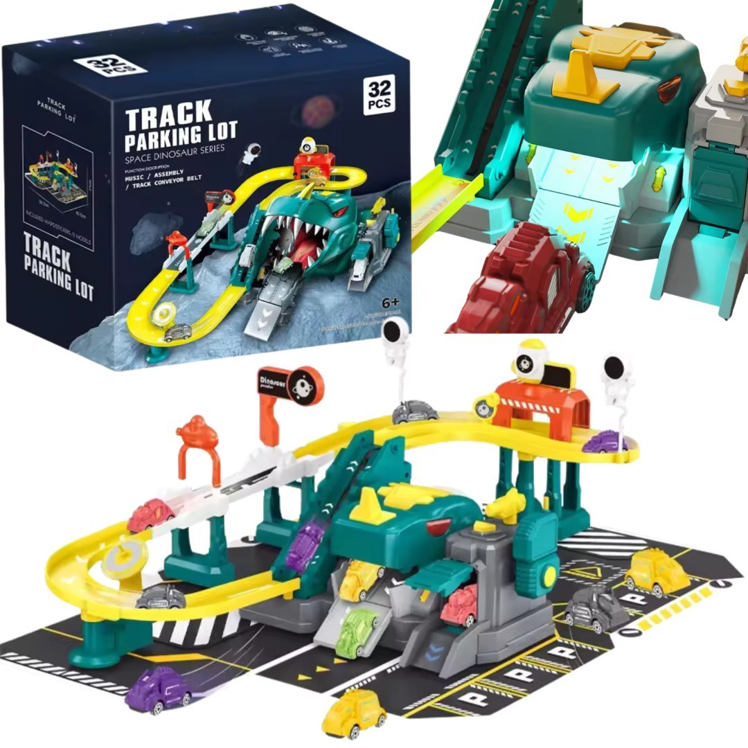 Wyrzutnia samochodzików: Funkcja wyrzutni samochodzików na tor jest zapewniona przez realistycznie zaprojektowaną głowę dinozaura, która pełni rolę wyrzutni. Głowa dinozaura została specjalnie zaprojektowana tak, aby umożliwić łatwe i zabawne wyrzucanie samochodzików na tor. Ta funkcja dodaje dynamiki do zabawy i pędu w wyścigach.